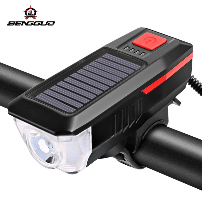 7599 ソーラー充電自転車ヘッドライトホーンライトマウンテンバイク夜間走行照明 USB 充電屋外