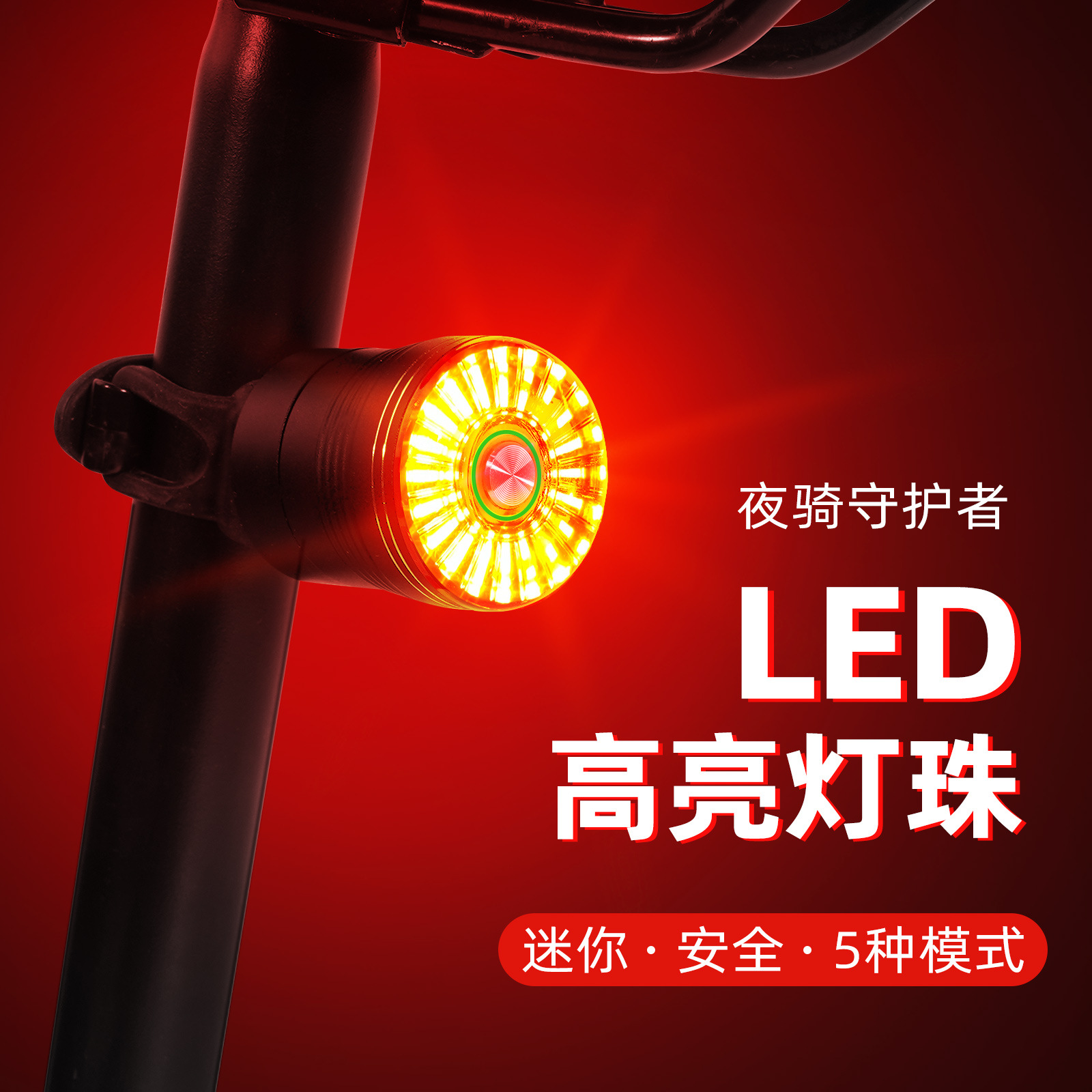 自転车スマートテールライトType-C充电防水ランプマウンテンバイク夜乗りテールライトブレーキ感知テールライト