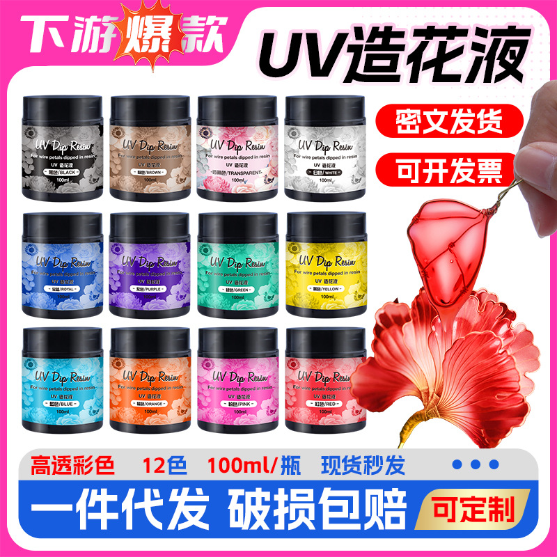 メーカー直販カラー造花液uv滴糊diy糸締め髪飾りエポキシ樹脂製花糊代発