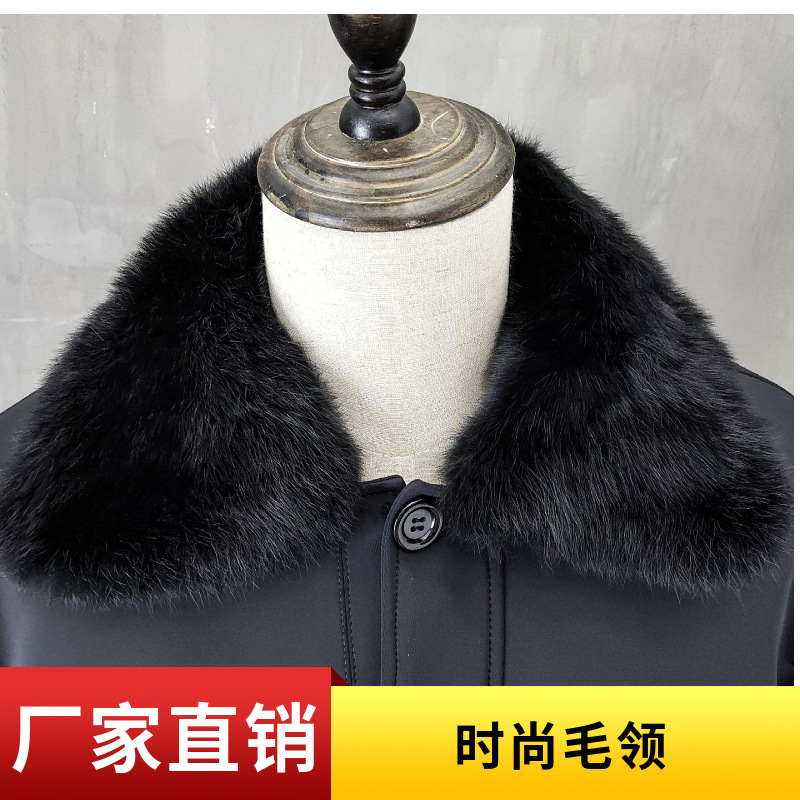 超大皮100% 兎毛襟冬保温皮服真毛襟方襟綿衣襟男女共通