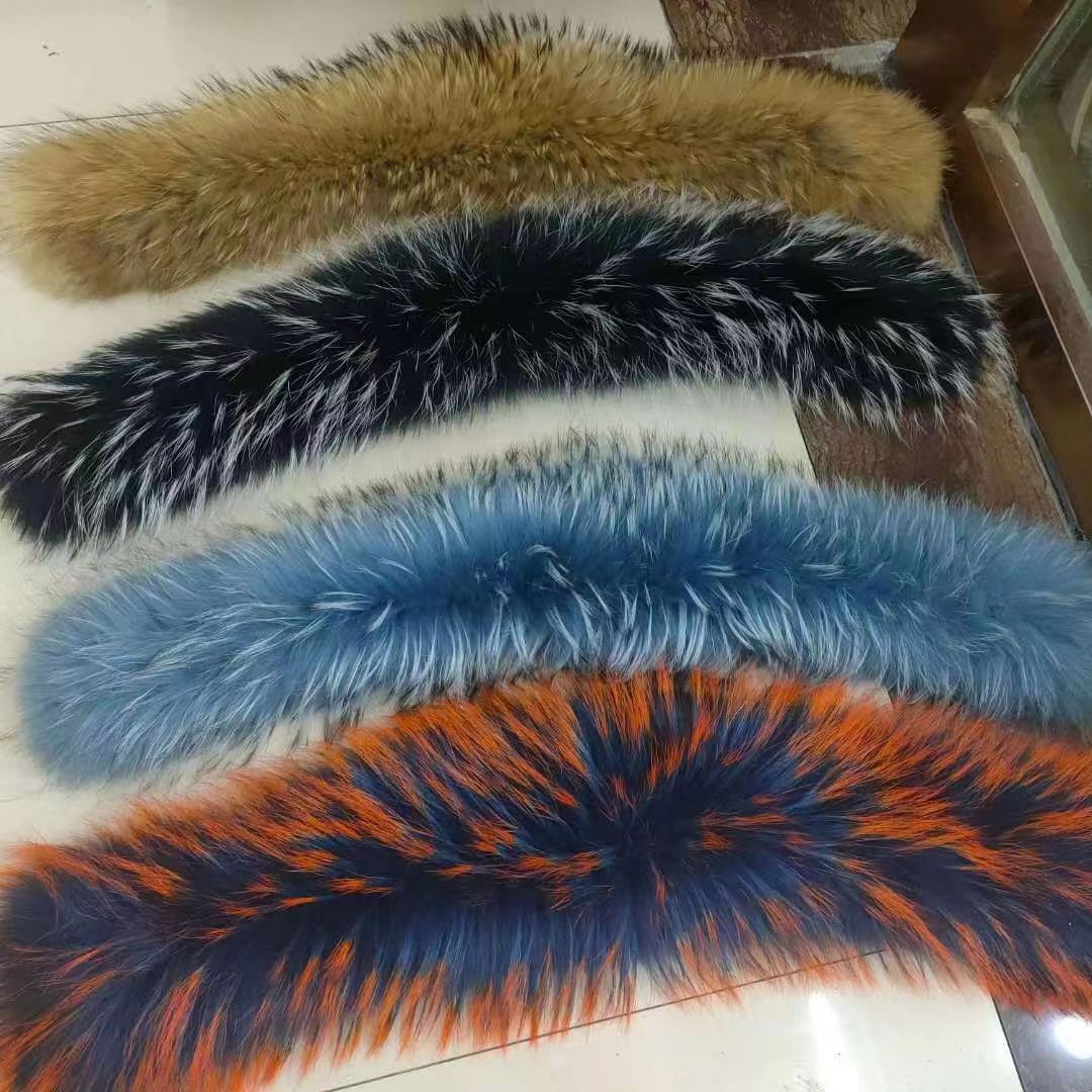 河北産ラクーンファー、天然色の毛皮の襟、既製バッグの裏地、毛皮の襟と帽子のトリム、在庫処分の本物の毛皮の襟