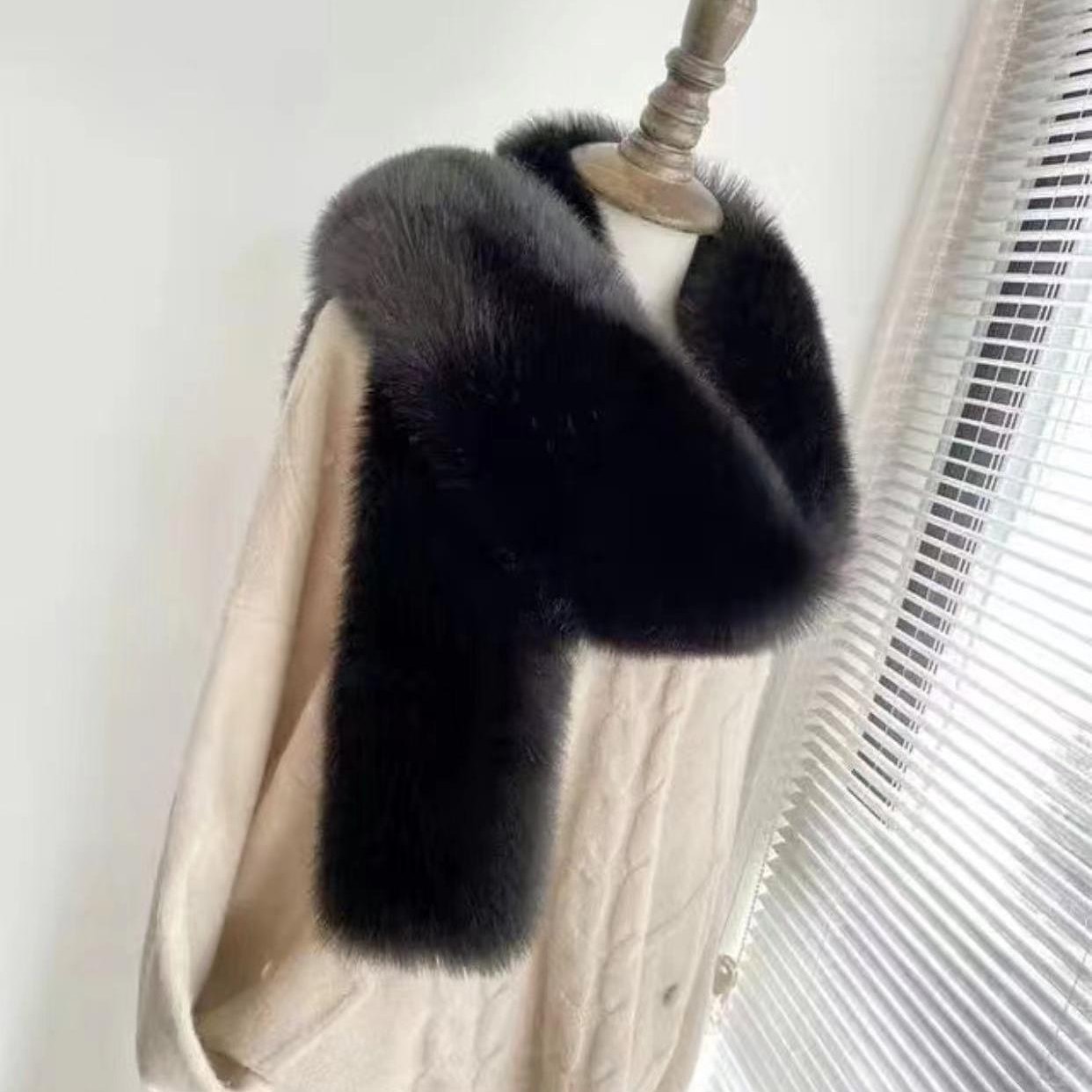 メーカー卸売 フォックスファー襟 シルバーフォックス原色ファー襟 貿易用モデル ロング丈襟 大きなファー襟 ロングタイプ 本物のファー襟