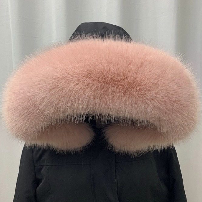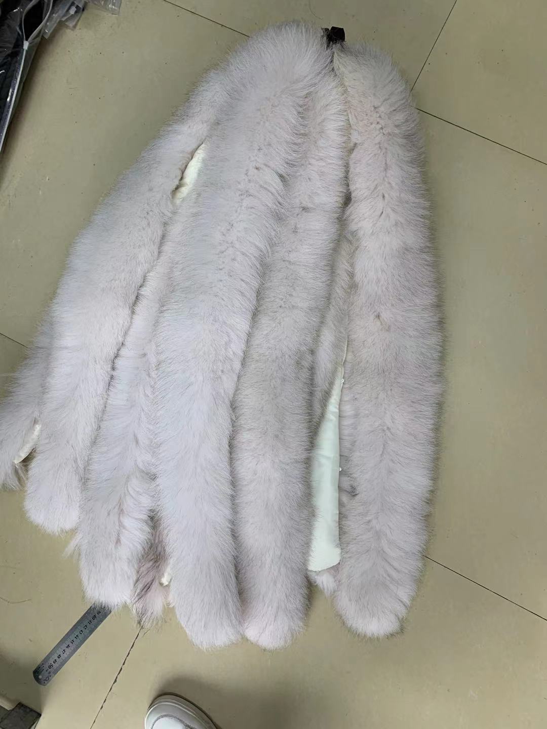 【メーカー卸売り】白い狐毛条銀狐毛襟ダウンジャケット狐毛襟