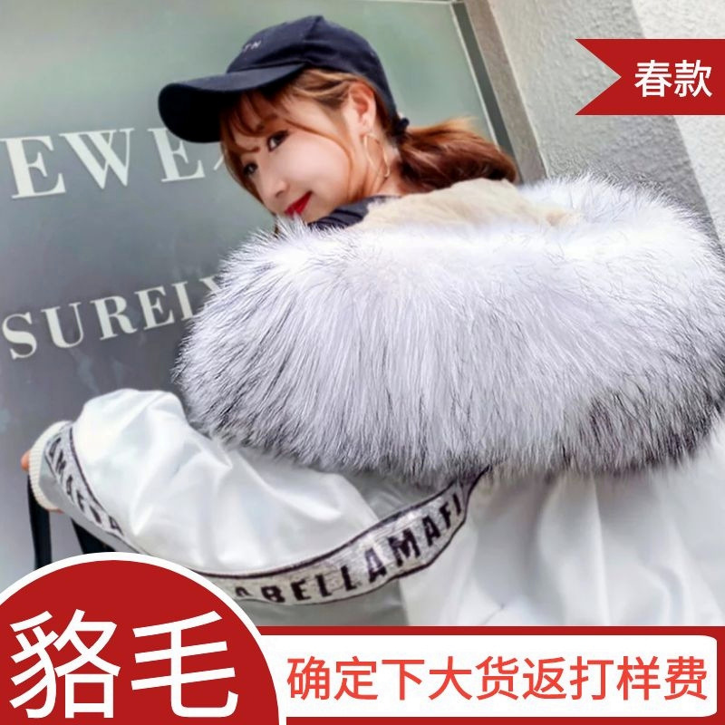 実物工場製 ラクーンファー襟付きダウンジャケット パーカー フォックスファー襟付き既製品ファー襟 日韓風ファー襟