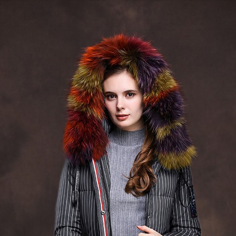 メーカー卸売り狐毛襟カラーカラフルダウンジャケット真毛毛皮毛襟