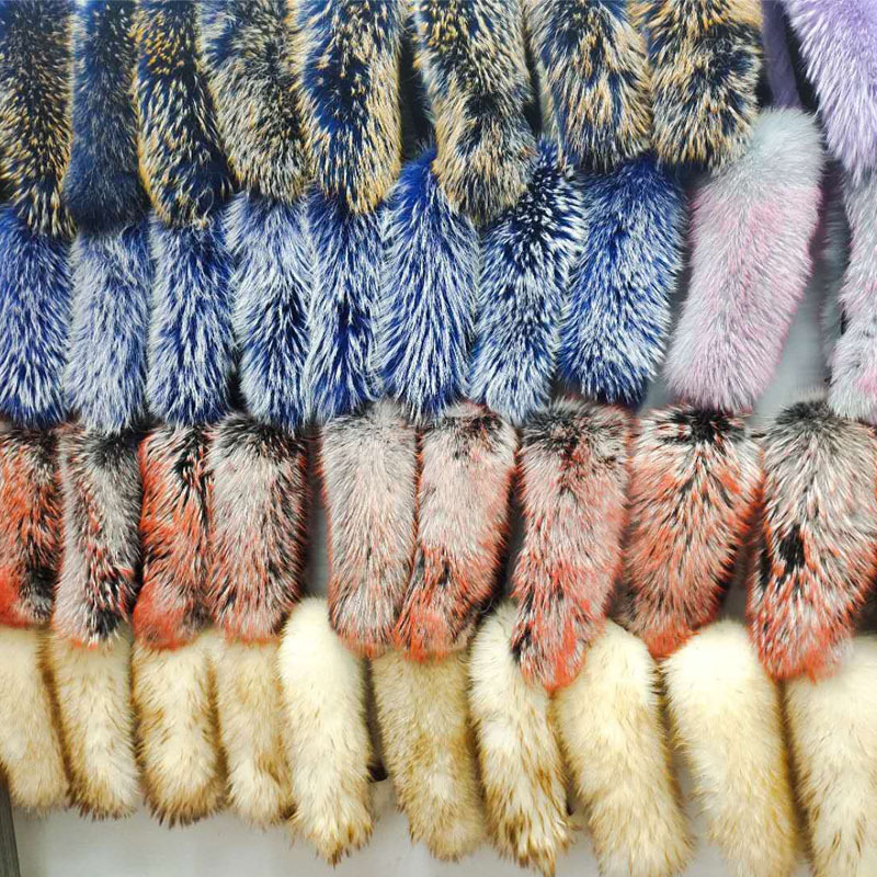 河北大営のキツネの毛の襟は黒いキツネの毛のパーカーの服の毛の襟のダウンジャケットの襟の染色の卸売りを加工します。
