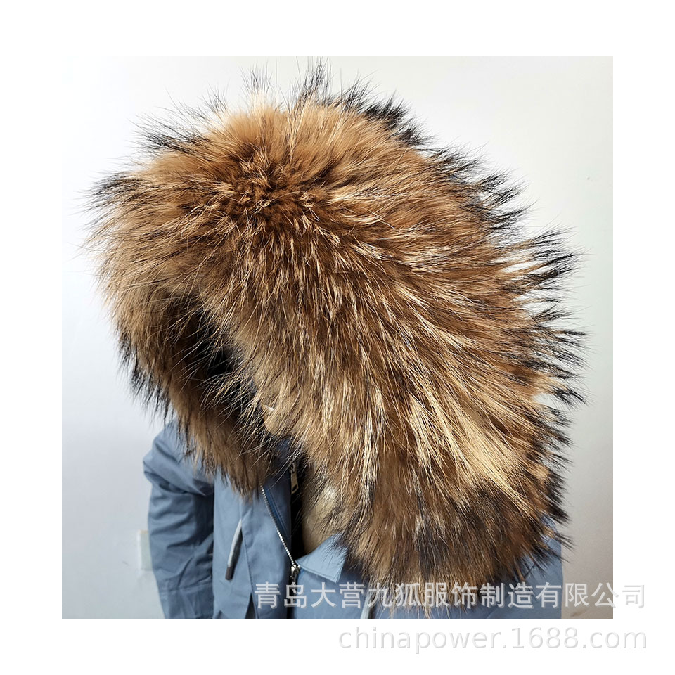 ホワイトタヌキの毛皮の襟カラーブロック帽子ストリップダウンジャケットの毛皮の襟取り外し可能な本物の毛皮の襟毛皮コート外国貿易クロスボーダー限定供給