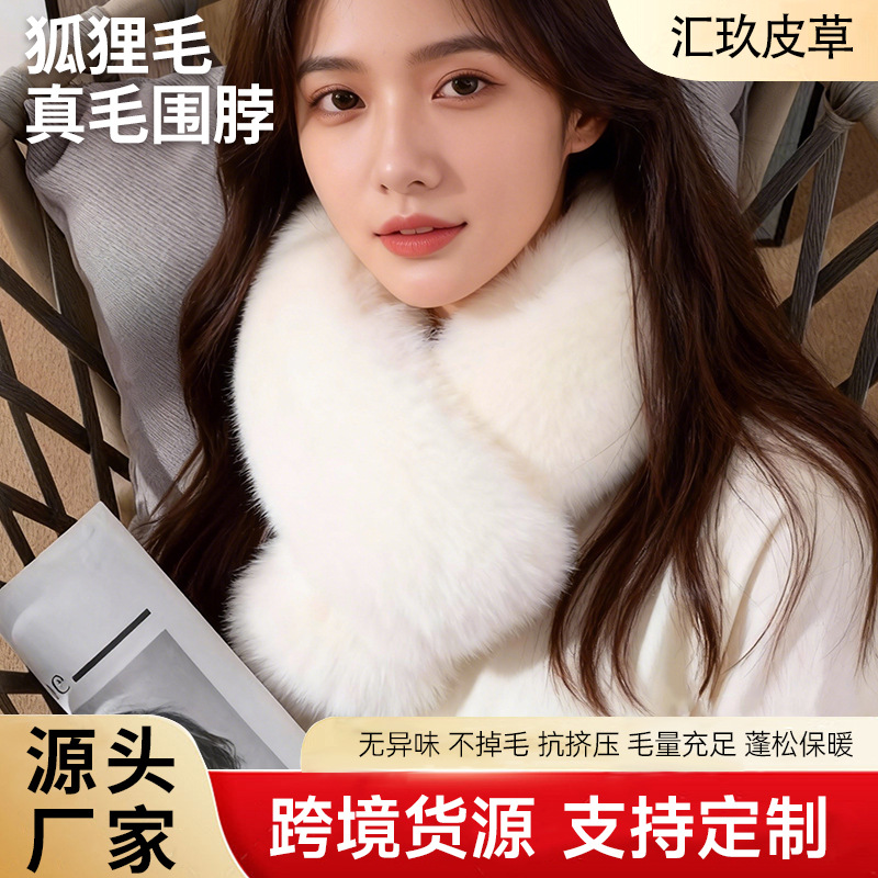 クロスボーダー羊毛スカーフ、本物の毛皮の襟付き羊革暖かいネックウォーマー、ピンクとブルーの女性用ファッショナブルな毛皮ストリップ、カスタムメイド