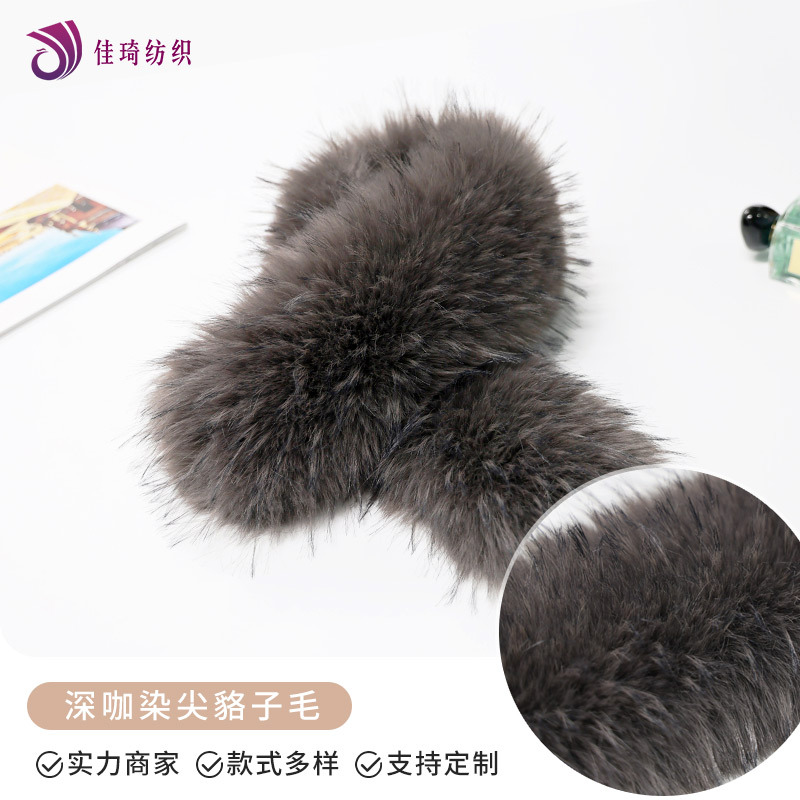 人気商品黒提地色白染青先タヌキ毛襟ファッション保温コート部品
