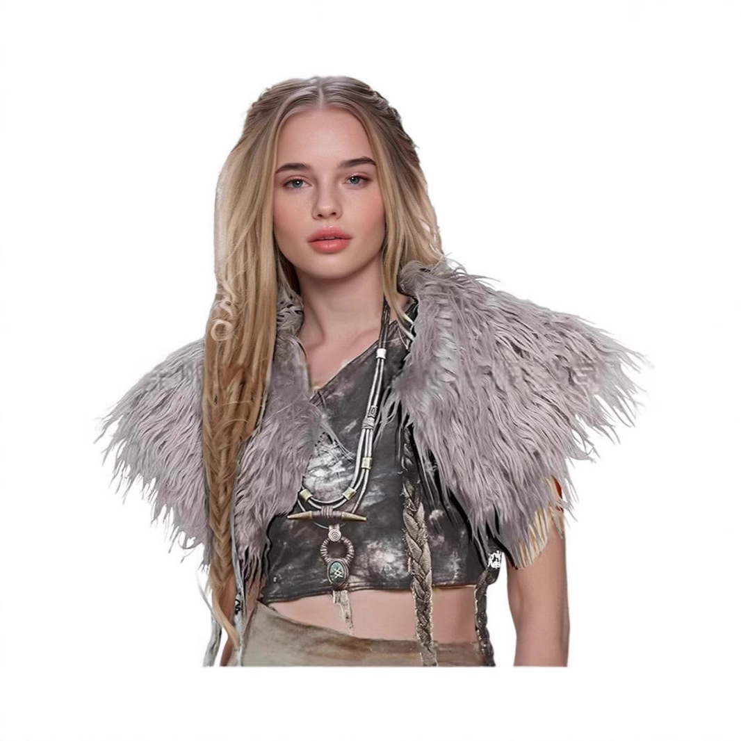欧米の国境を越えたバイキングの人造ウールの演技服の毛皮のcosマントのマントの毛の襟のハロウィンの役は演じます。