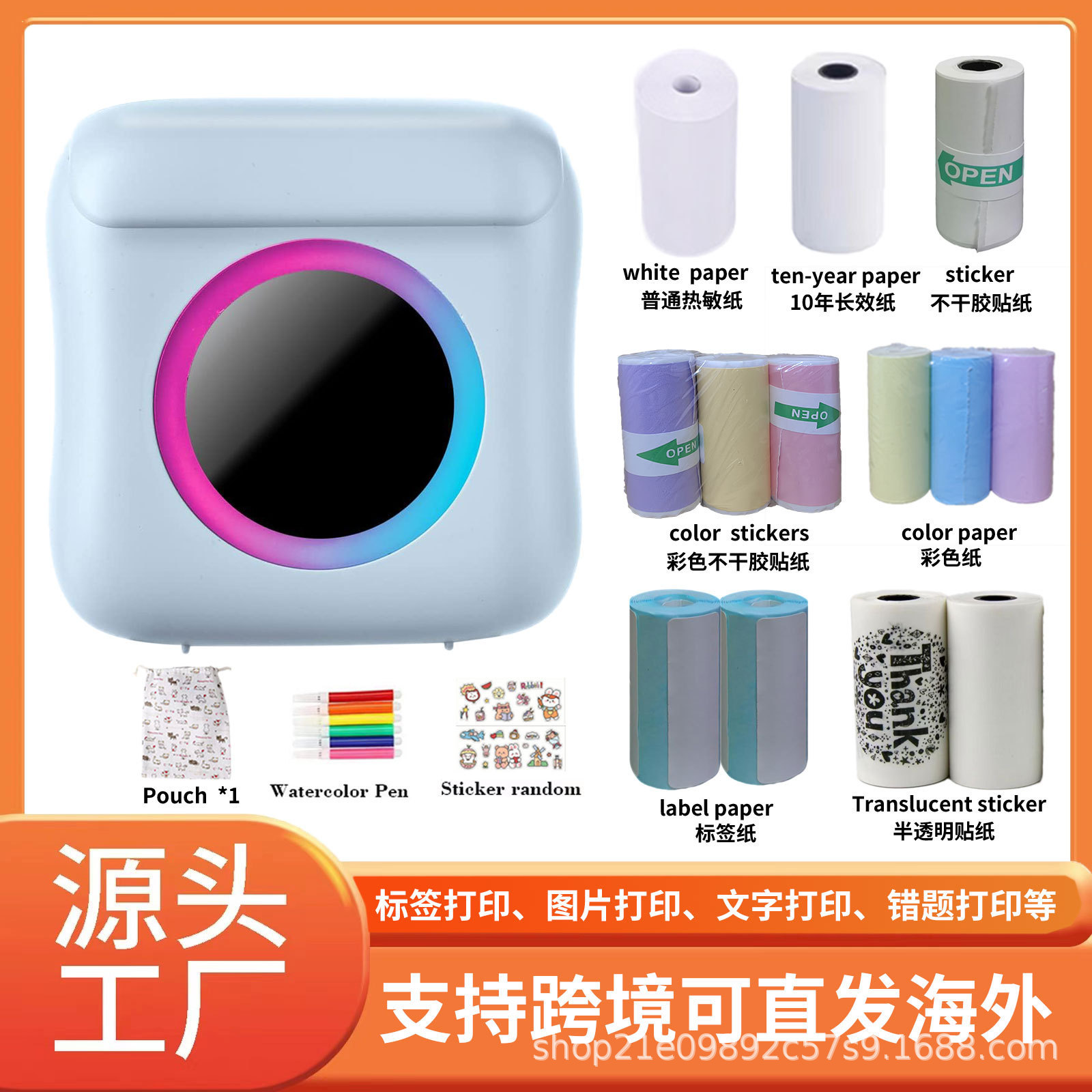 クロスボーダーラベルプリンタ小型ミニ写真手帳印刷ミスプリンタニャンニャン作業整理神器