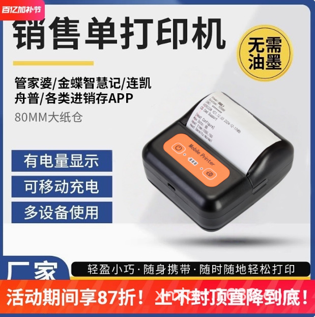 80mmポータブルサーマルポータブルレシートプリンター、キッチンスーパーレシートプリンター、Meituan Ele.meテイクアウトレシートプリンター