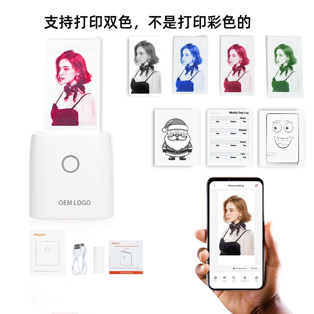 クロスボーダーミニカラーフォトプリンター、ポータブルBluetoothワイヤレス、テキスト・サーマルラベル、手帳専用