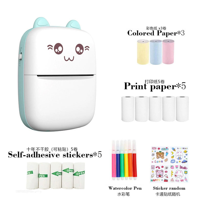 ミニサーマルプリンタ、ポータブル写真ラベルプリンタ、15ロール紙/シール/カラーペンセット付き