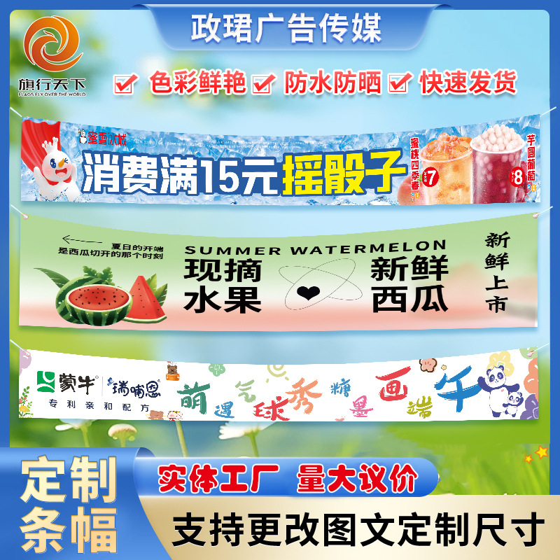 カラーバナー製作、横長バナー、春亜紡旗布、外貿工場直販、源工場カスタム
