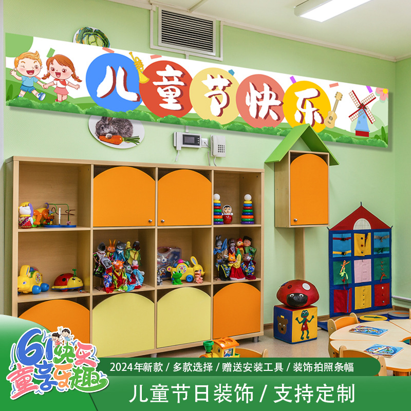 六一子供の日幼稚園小学校横断幕教室の背景装飾シーンの配置卸売り