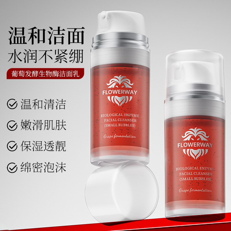 FLOWERWAY グレープ発酵生物酵素洗顔料ディープクレンジングマイルドで非刺激性の小さな泡洗顔料