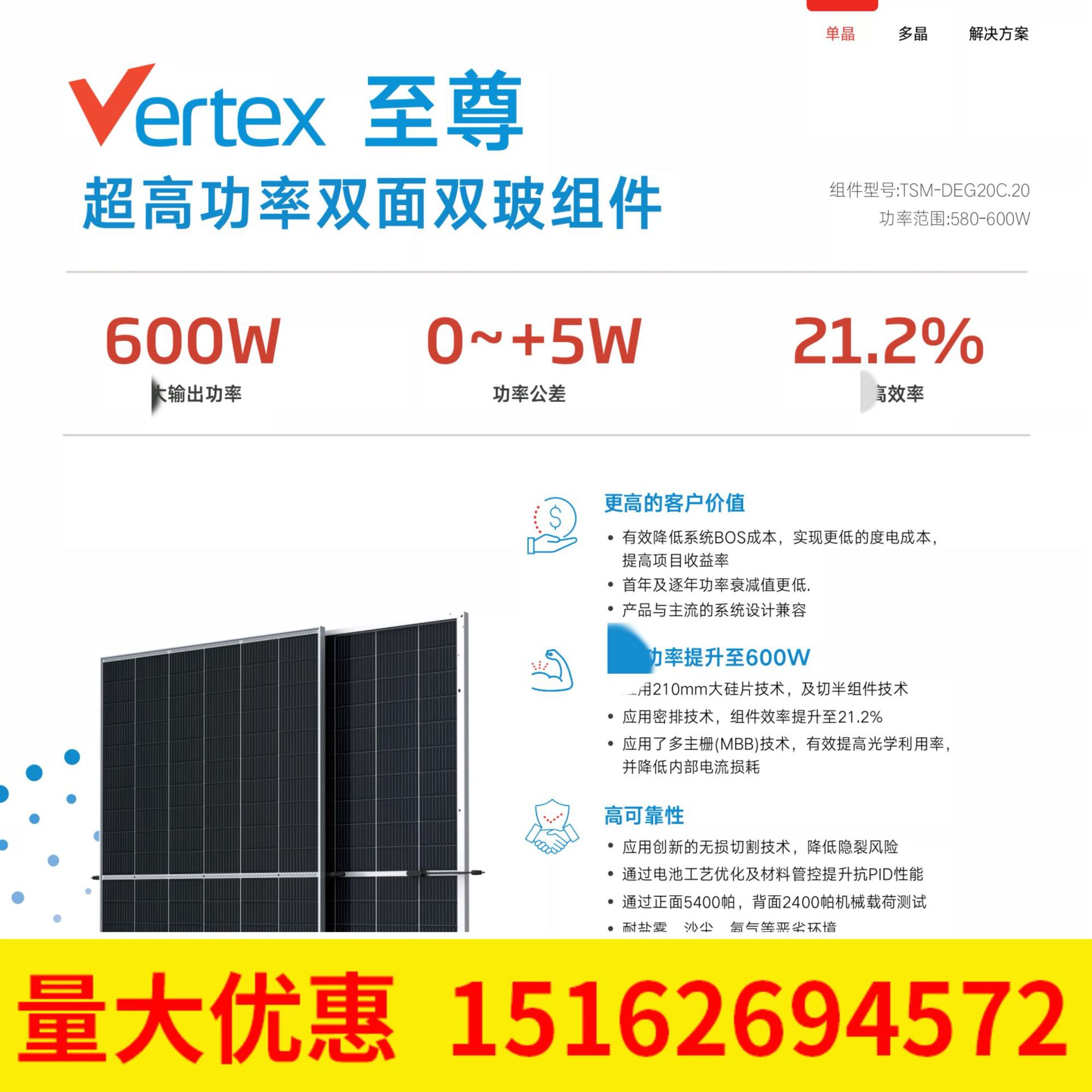 ダブルガラス天合太陽光発電板600ワット新Q1級590W太陽光板商用太陽光発電板