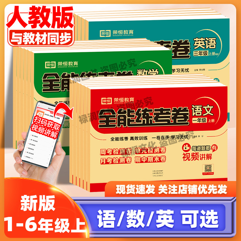 2025年全能練習試験用紙 小学1~6年生 上学期 中国語 数学 英語 人民教育出版社版 試験問題集 クラシック