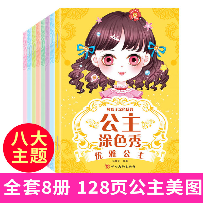 お姫様の百変塗り絵ショー6冊の都市の夢幻の美少女は色の落書きを塗ります。