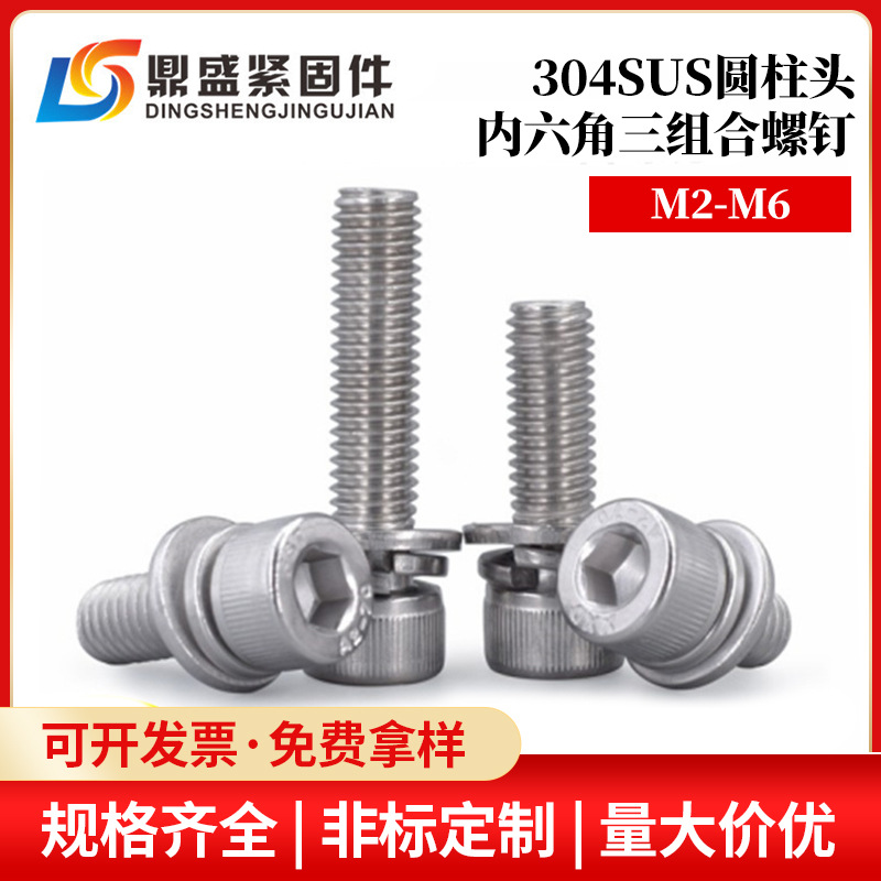 メーカー現物304ステンレス内六角平弾マット三組み合わせねじカップ頭内六角組み合わせねじ釘