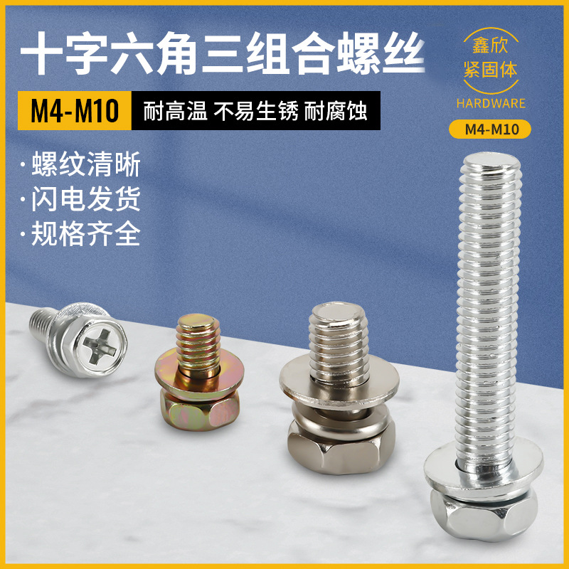 凹脳十字外六角三組み合わせねじ凹穴六角十字組み合わせボルトねじm 4m 5m 6m 8m 1