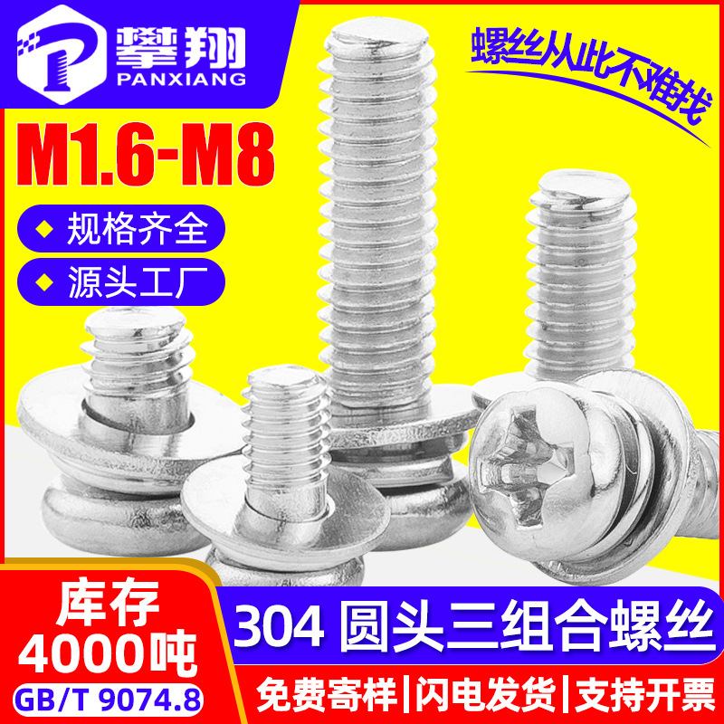 304ステンレス丸頭三組ねじガスケット十字盤頭平弾パッド三組ねじm2/m3/m4