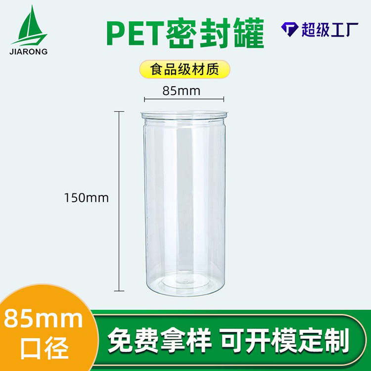 卸売り85 * 150pet包装缶プラスチック密封缶花茶ビスケット餌缶透明広口ペットボトル