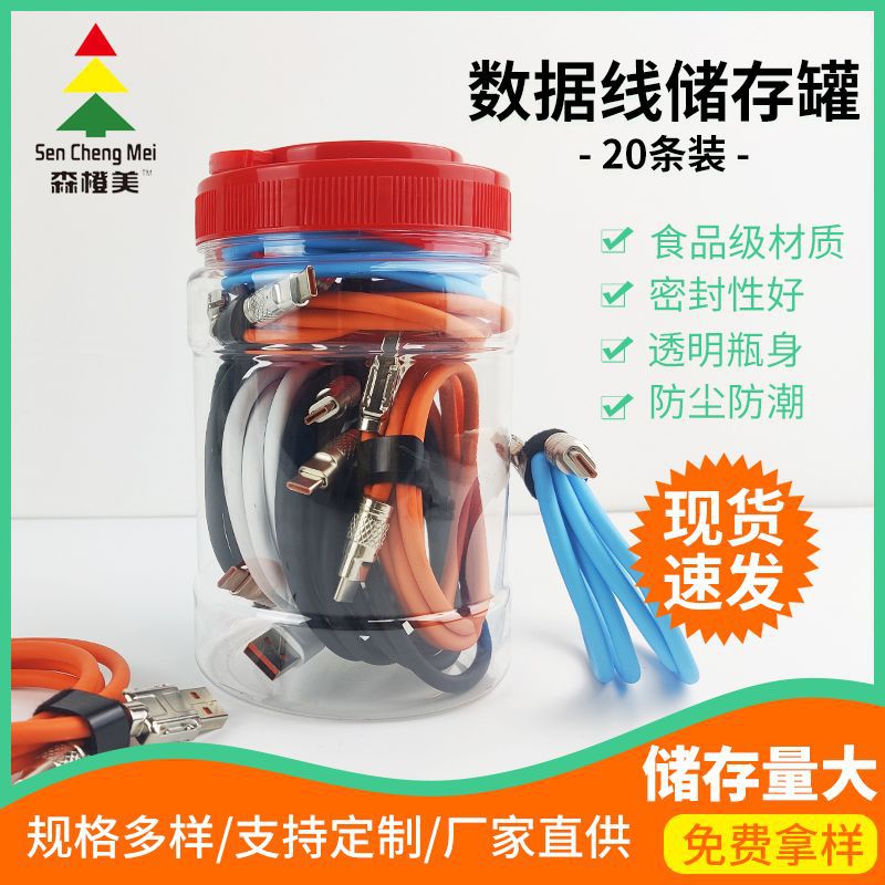 クロスボーダー热い贩売データケーブル缶収纳缶バルクヘッドフォンストレージ缶20本大容量シールpe透明缶