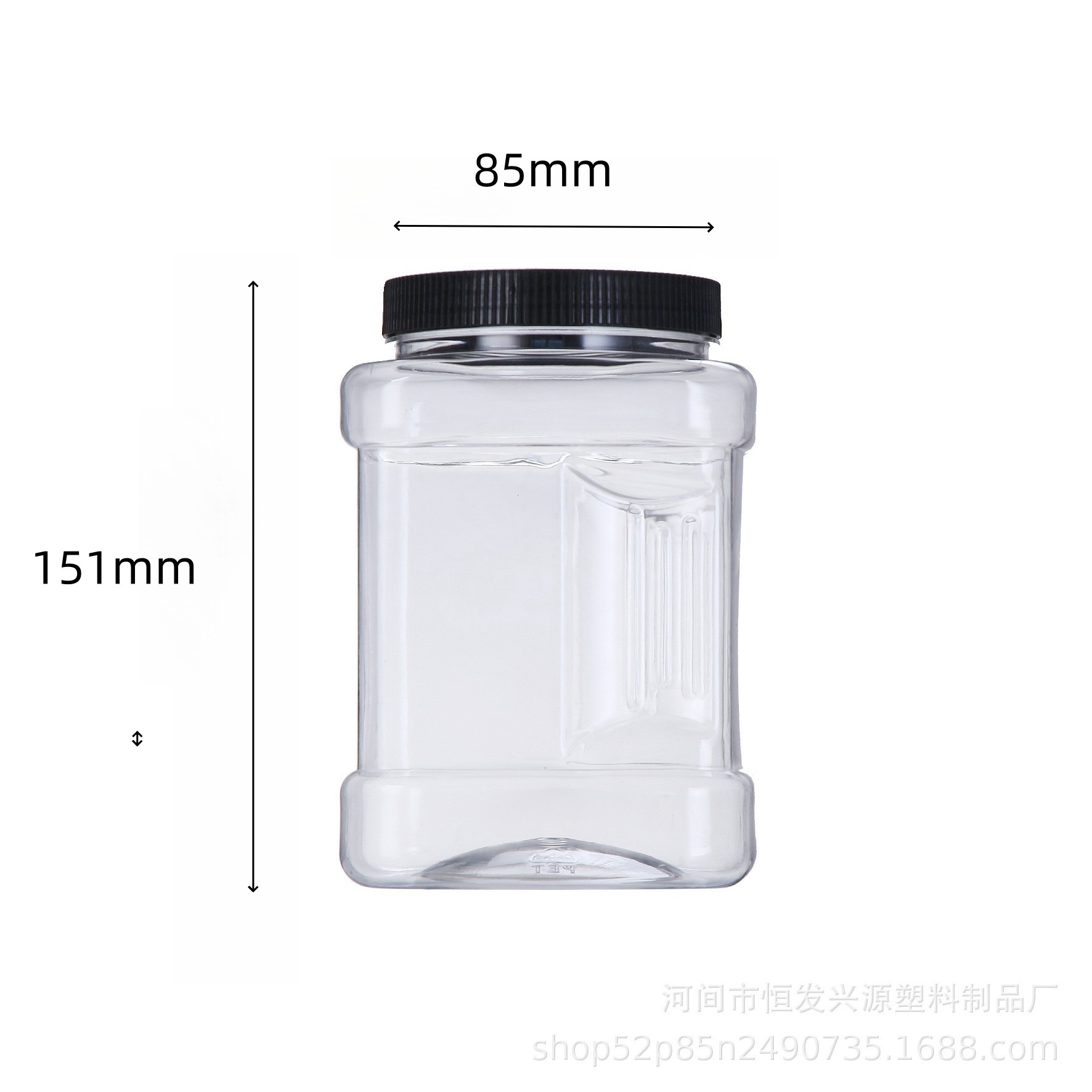 65口角型プラスチックボトルpetキャンディー透明密封プラスチック缶ボトル蓋付き大口径スナックナッツ缶