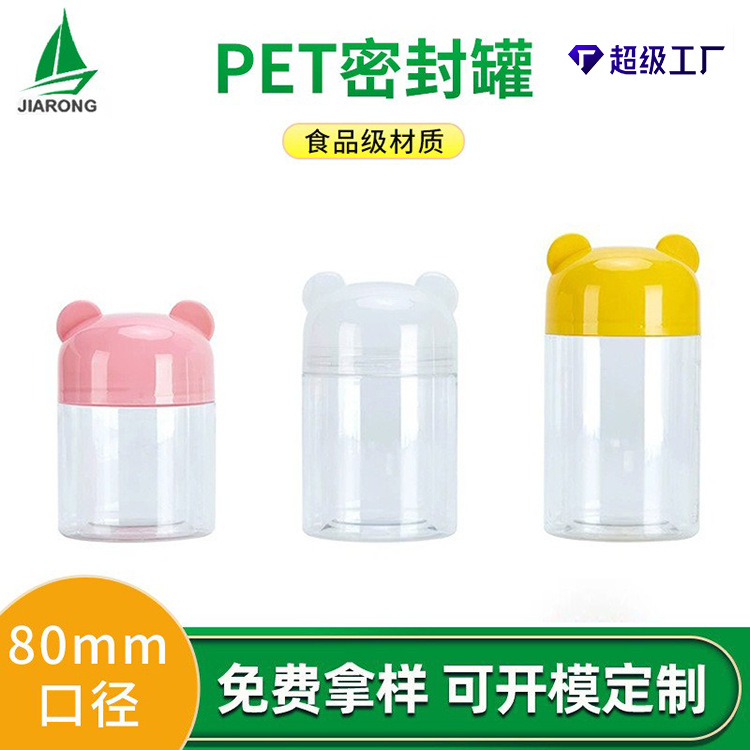 卸売り漫画熊蓋ネット赤食品缶pet透明児童クッキー間食補助食クッキーキャンディー缶