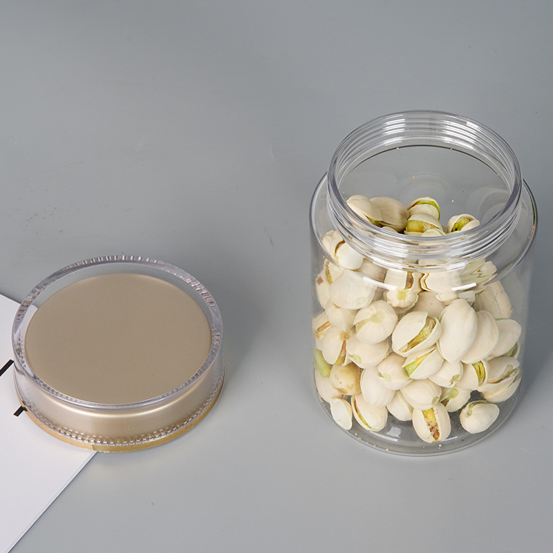 卸売り透明プラスチック缶茶葉ナッツ密封缶円形広口瓶pet包装缶収納密封缶