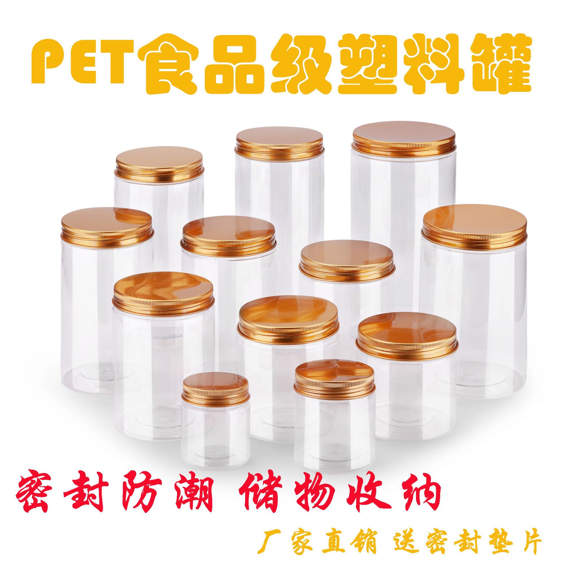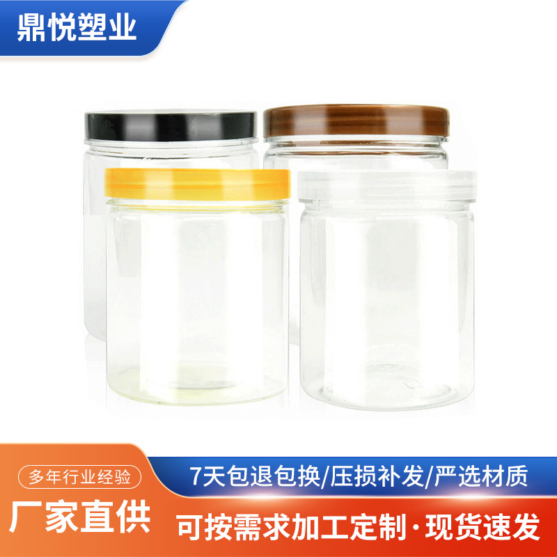 スポット卸売りアルミ蓋食品級透明プラスチック缶蜂蜜花茶間食ナッツ密封缶PET広口瓶