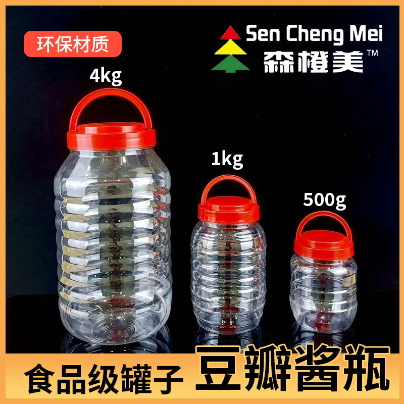 メーカー在庫 500 グラムプラスチックボトルラウンド透明密封された豆ペースト缶ハンドル付きプラスチック缶 1 キロ 1.0kg 蓋付き