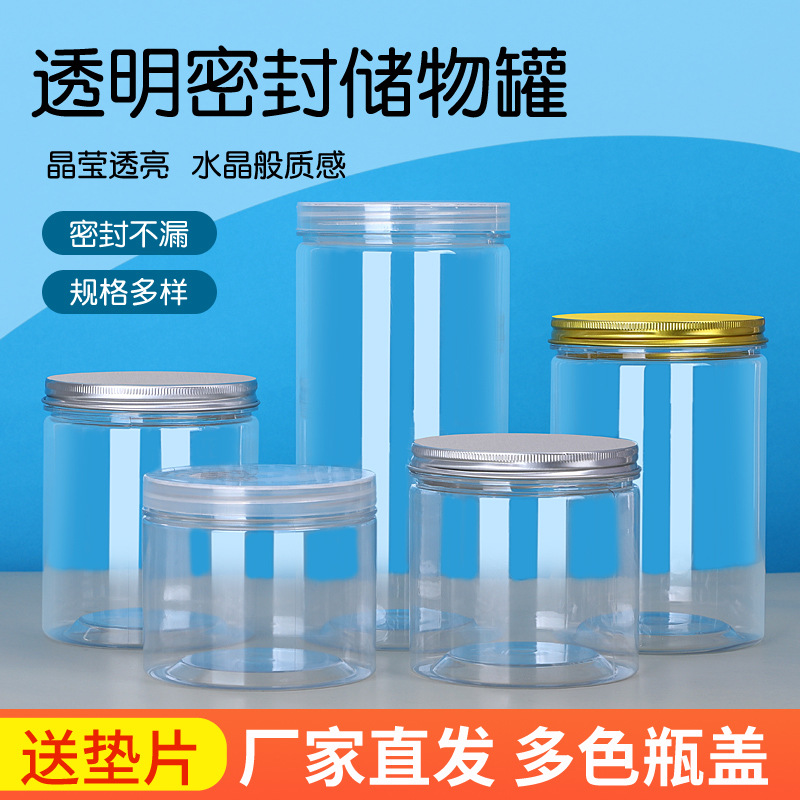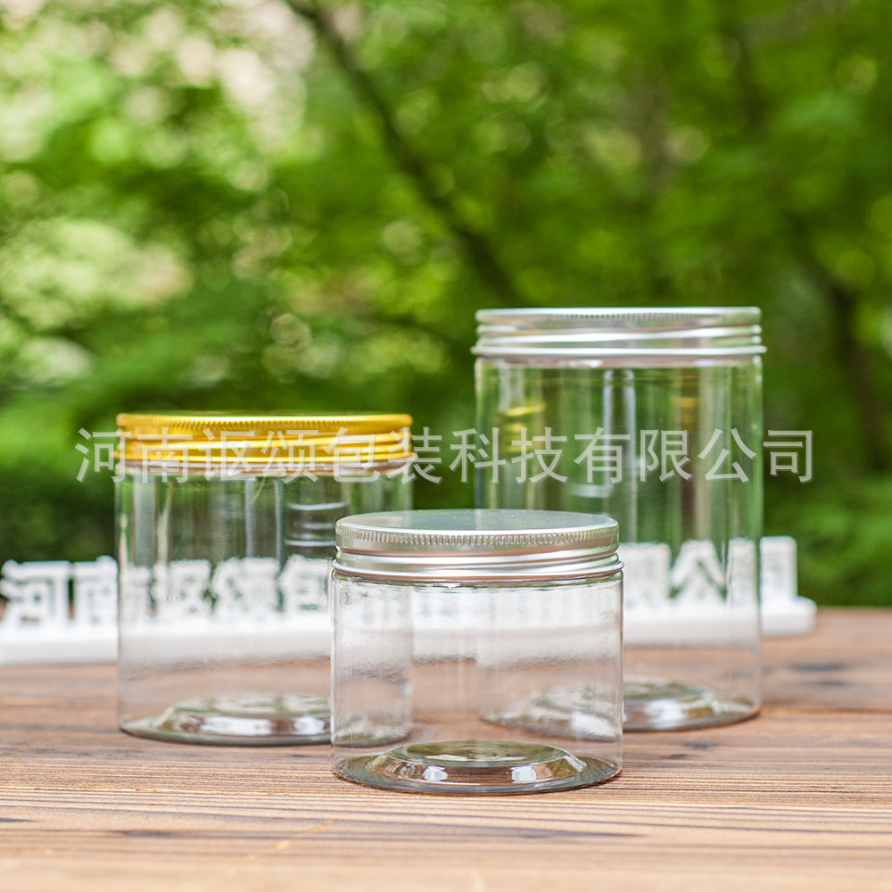 アルミ蓋透明プラスチック缶食品級雑穀密封缶pet広口瓶ナッツ包装缶卸売り
