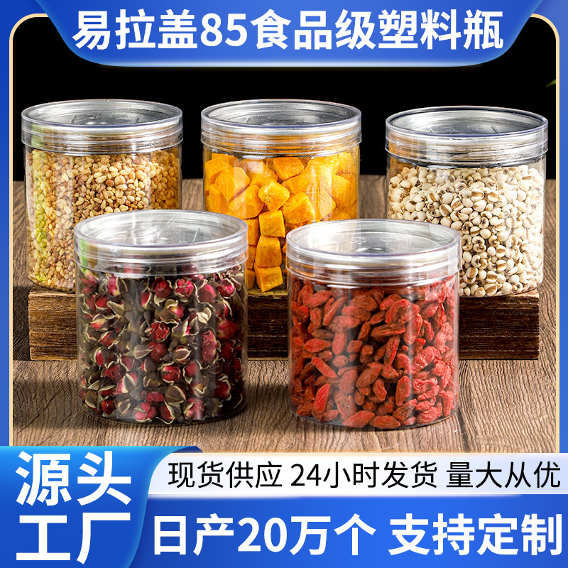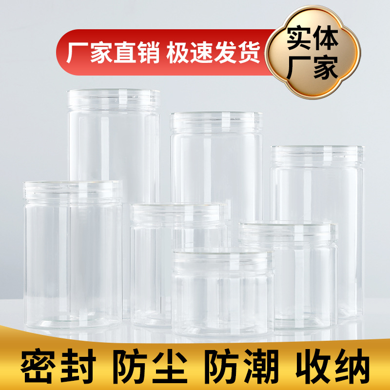 現物卸売り食品級密封缶プラスチック瓶円形透明プラスチック缶雑穀ナッツ花茶分注缶
