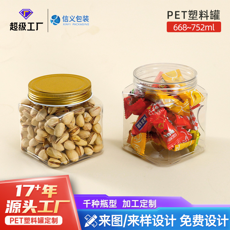 工場直接供給透明ペットプラスチック缶正方形食品缶空缶食品グレードの密封缶カスタム包装材料