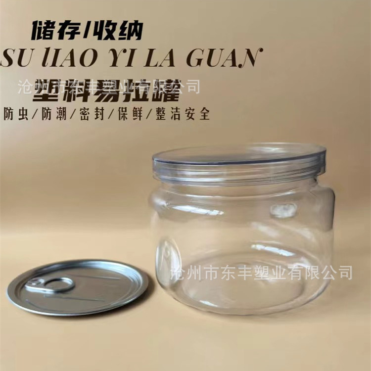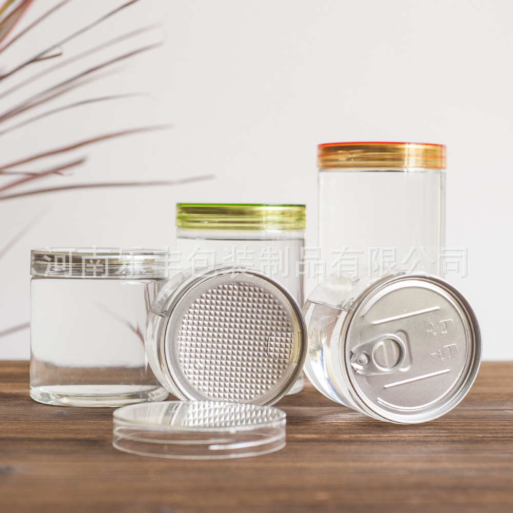 高透水晶蓋透明プラスチック缶卸売り食品級缶包装瓶はpet食品瓶を引き裂きやすい