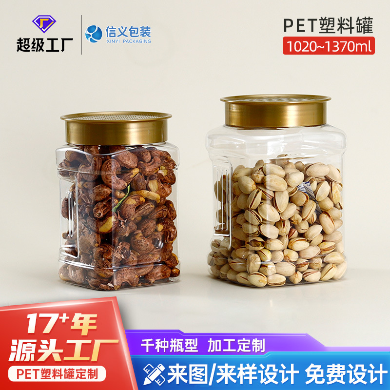 メーカー卸売プラスチックボトル茶ナッツプラスチック缶pet透明密封瓶広口収納瓶密封