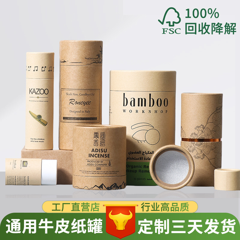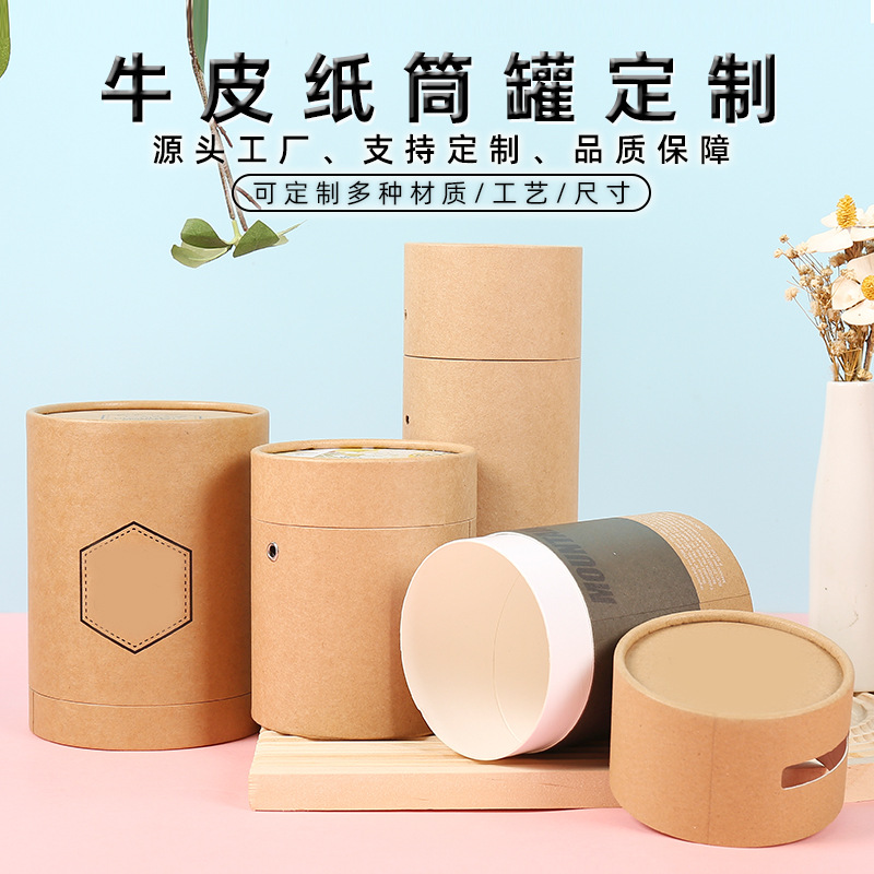 ユニバーサルクラフト紙チューブカスタムクロスボーダー円筒形包装箱エッセンシャルオイルボックス茶紙缶カスタム印刷小ロット