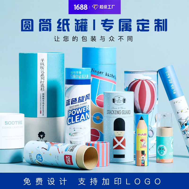 カラープリント円筒紙缶カスタム印刷包装紙管カスタム円筒紙缶カスタム円筒包装箱