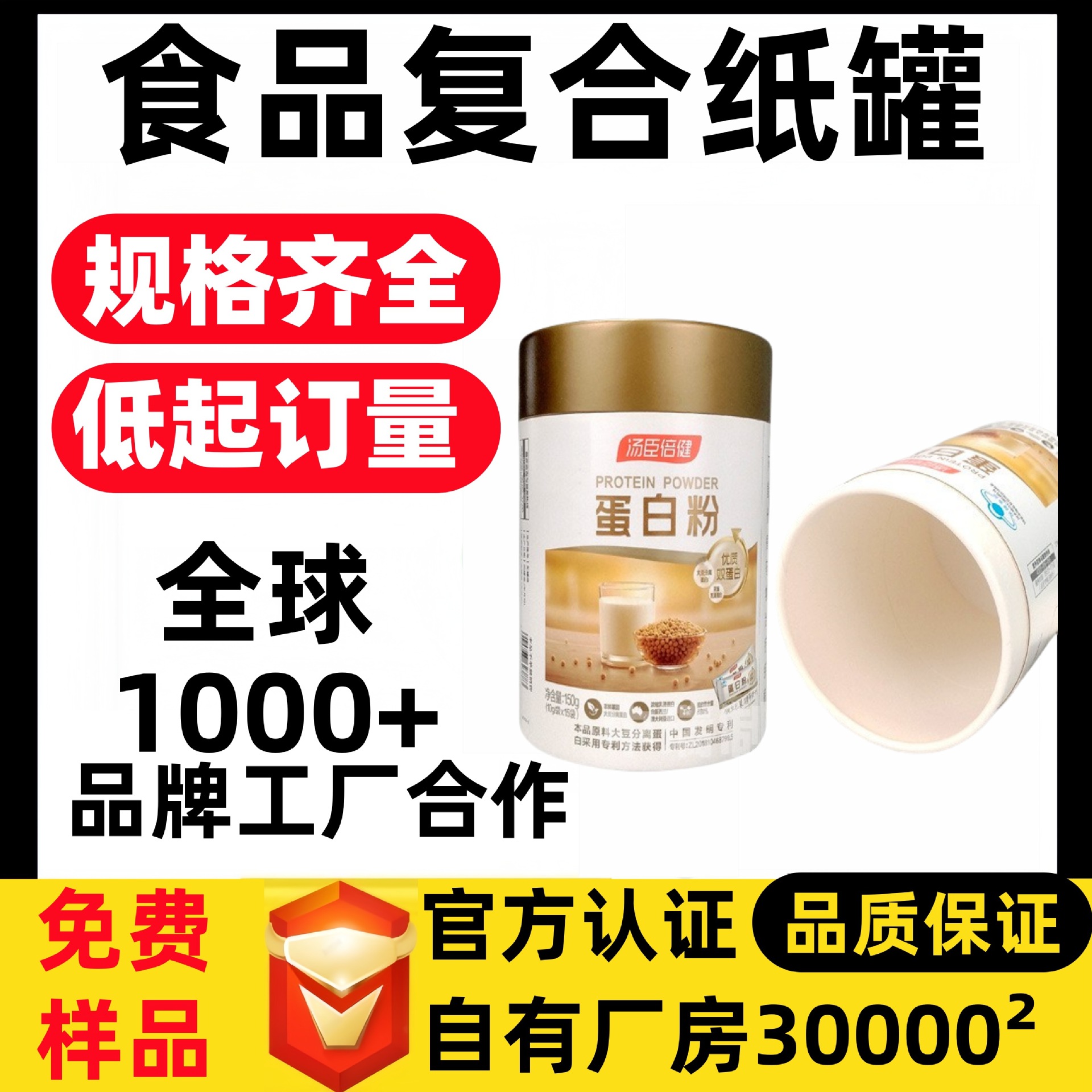 フル紙缶カスタムアルミ箔破れやすい紙管密封防湿プロテインパウダー食品シリンダー包装缶複合缶