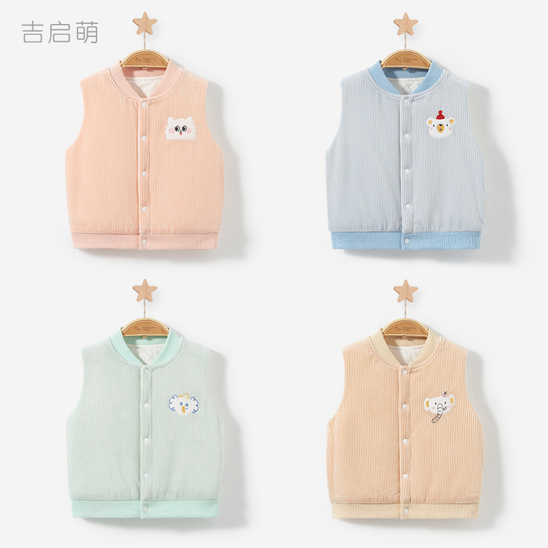 ベビーベスト秋の冬の男女の赤ちゃんの新入生の子供の肩の外は春秋の金を着て綿の保温のベストを挟みます。
