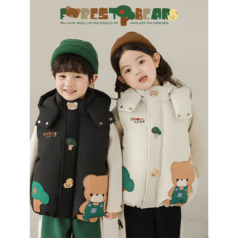 Wuli Bu ペア 11 ボーイズ 2025 新しい漫画クマフード付きコットンベスト冬のファッション暖かいジャケット