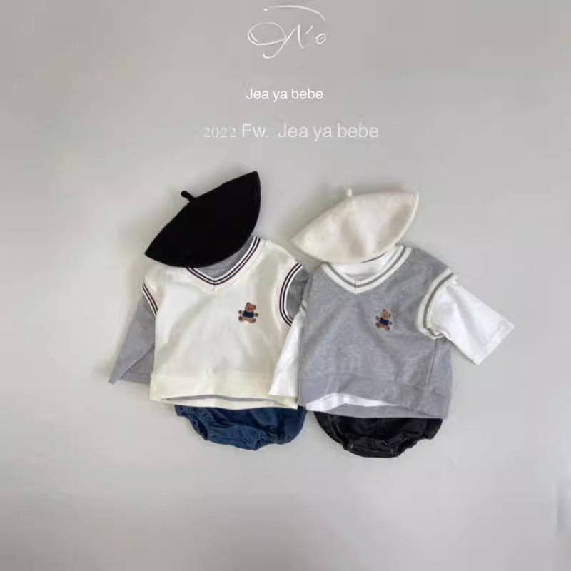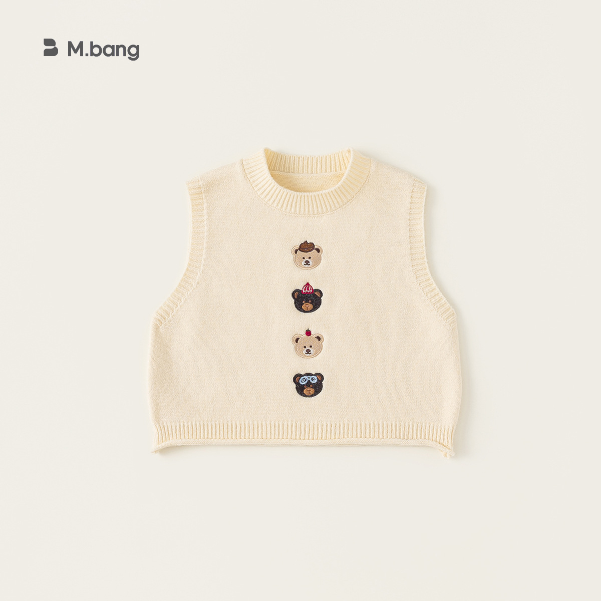 邦選子供服子供用ベスト2025秋モデル漫画風クマ柄ニットベスト男の子用セーターベスト女の子用服