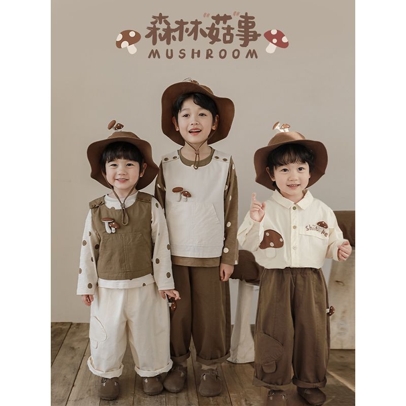 私の中の卜一の男の子のしいたけの人形は袋を貼って大きいポケットの工装の馬甲の秋の子供の格好いい上着の潮を掛けます。