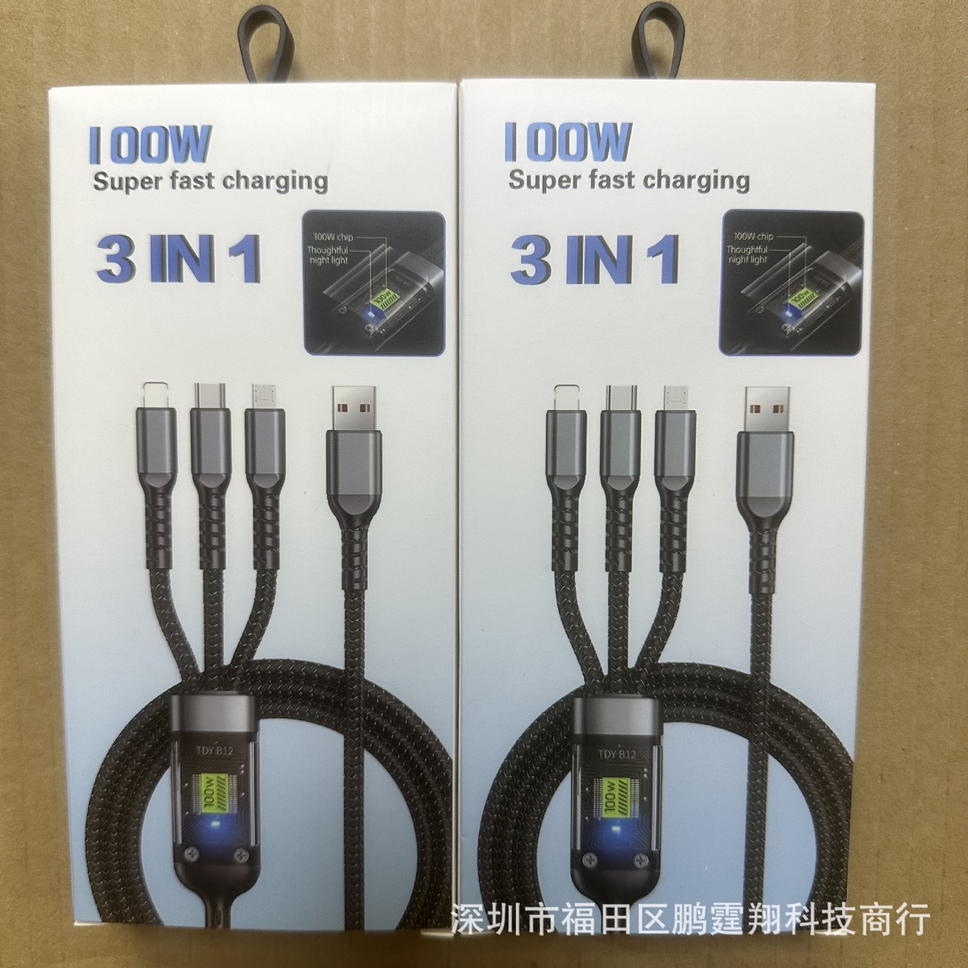 新しい100W透明ランプは、3つのデジタル表示のデータケーブルの包装箱/USB 3つのデータケーブルの現物包装をドラッグします。