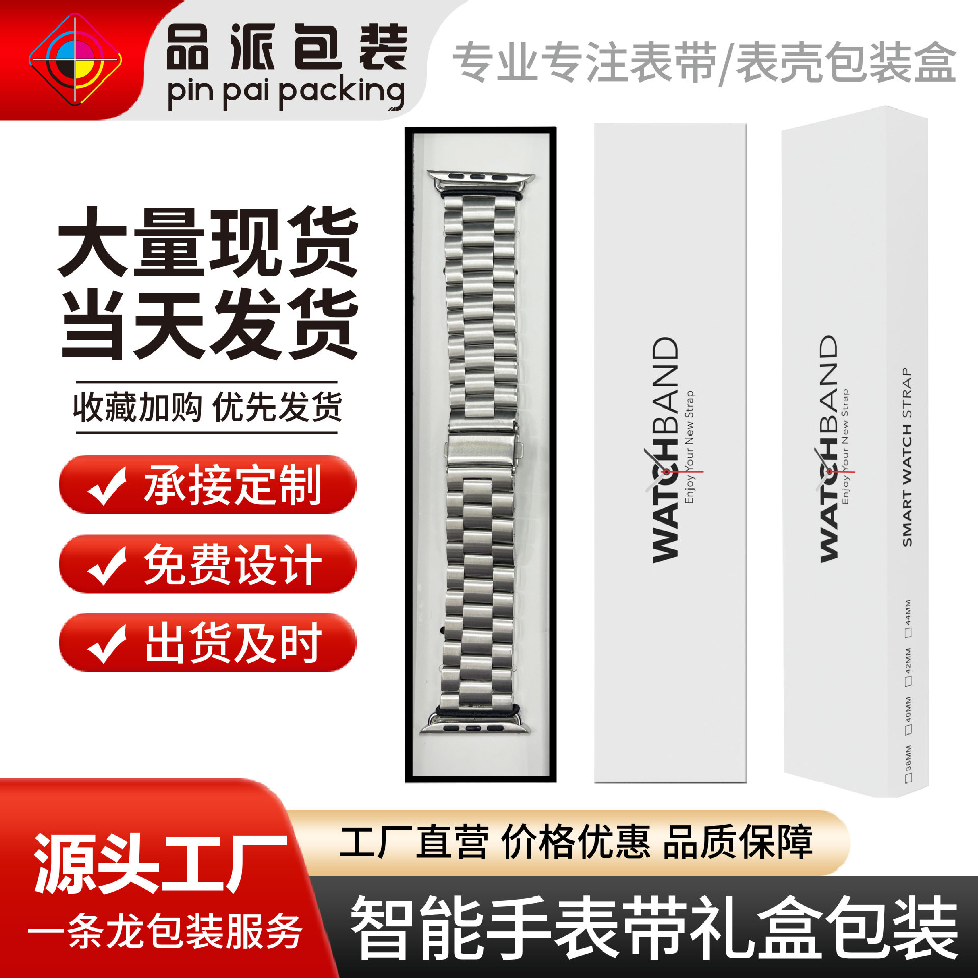 通用表带包装真皮钢表带适用苹果Fibit安卓智能苹果手表带包装盒