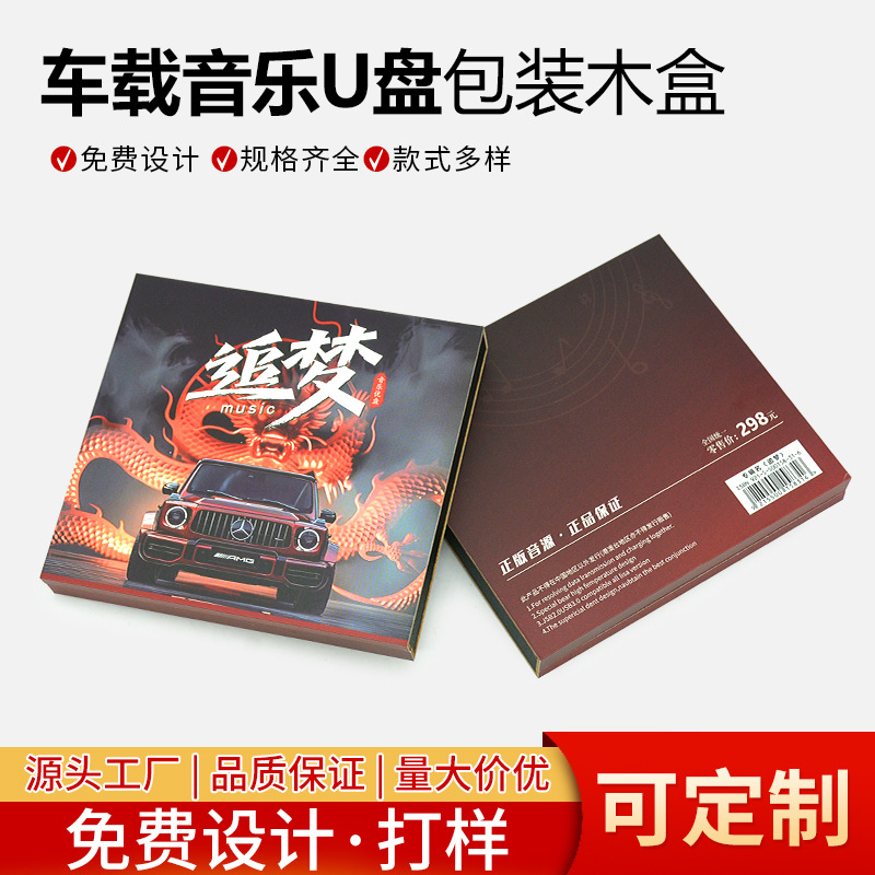 2025 新しいハイエンド車の音楽 USB フラッシュドライブ包装フリップ木箱車の USB フラッシュドライブ包装箱カラーボックス在庫あり
