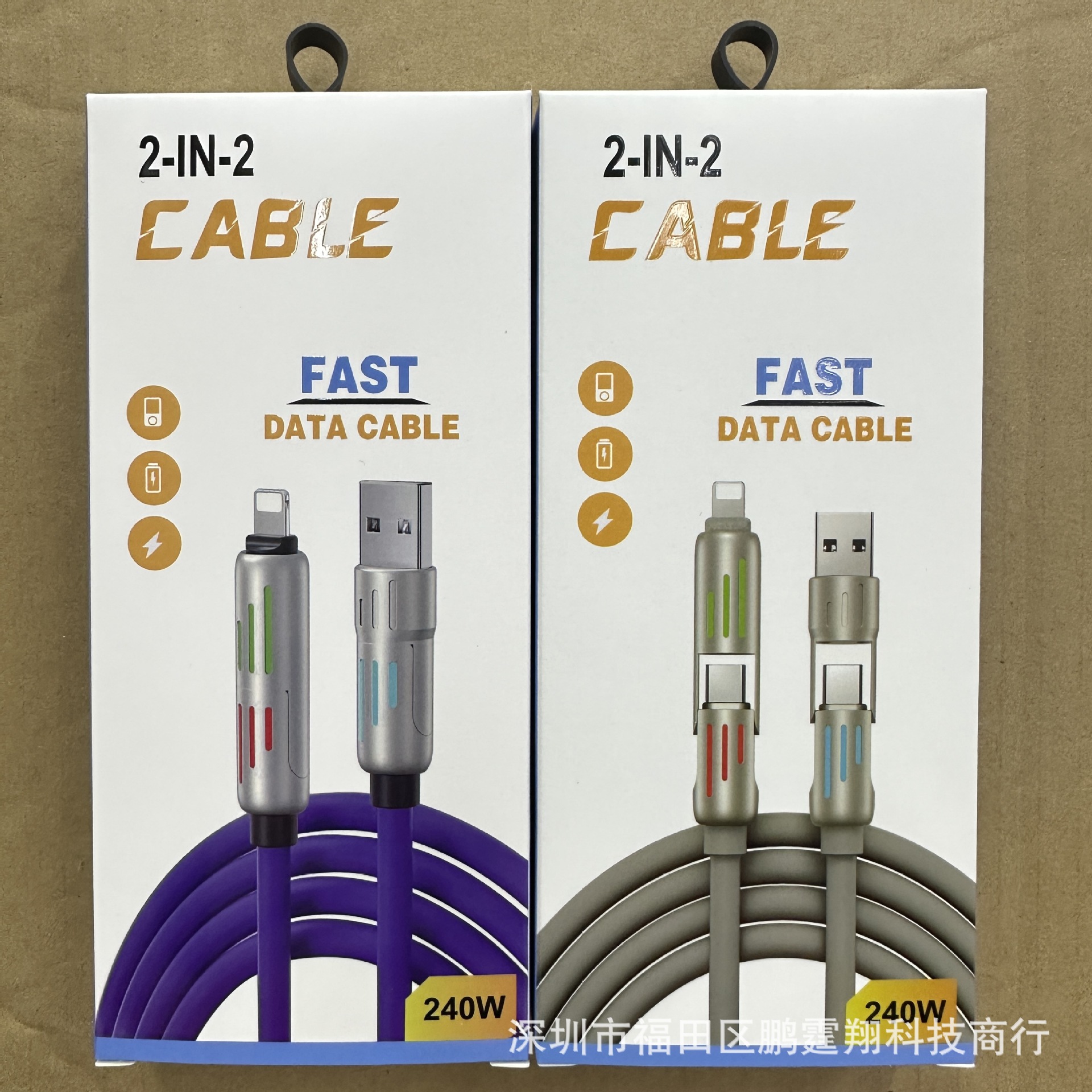 3cデジタル製品包装カラーボックスカスタム金銀紙フックカードボックスケーブル充電ヘッド開窓紙ボックス